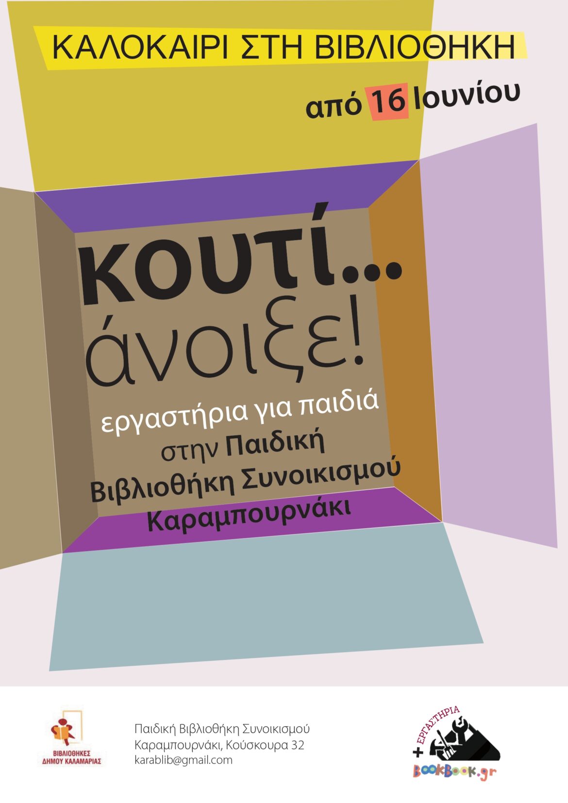 Η Καλοκαιρινή Εκστρατεία Ανάγνωσης και Δημιουργικότητας της Εθνικής Βιβλιοθήκης της Ελλάδος επιστρέφει! Οι Βιβλιοθήκες της Καλαμαριάς μέλη του Δικτύου Ελληνικών Βιβλιοθηκών συμμετέχουν στην ΚΕ. Από την Τετάρτη 29 Ιουνίου έως και την Κυριακή 4 Σεπτεμβρίου οι βιβλιοθήκες του Δικτύου Ελληνικών Βιβλιοθηκών θα ανοίξουν και πάλι τις πόρτες τους για να υποδεχτούν μικρούς και μεγάλους φίλους τους, να διαβάσουν παλιές και καινούργιες ιστορίες, να εμπνευστούν, να εξερευνήσουν, να παίξουν με τη φύση, και μέσα από πρωτότυπες δράσεις να ανακαλύψουν νέες διαδρομές ανάγνωσης.